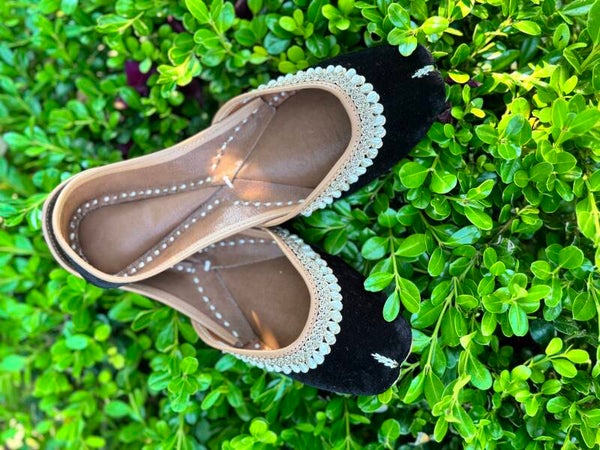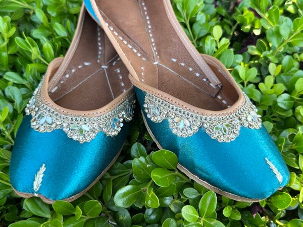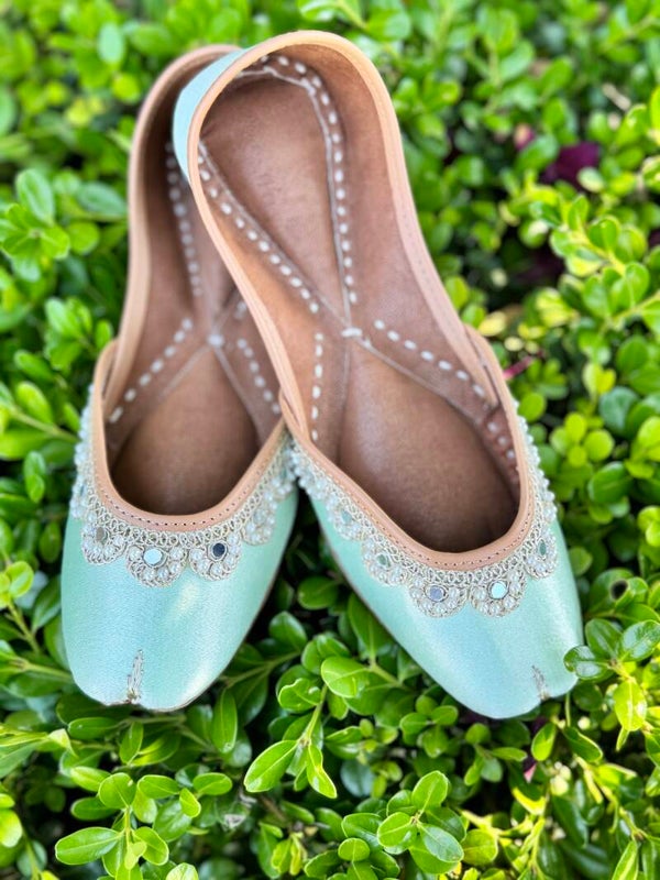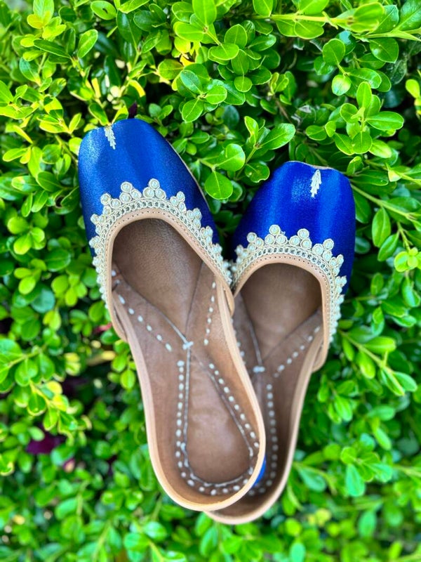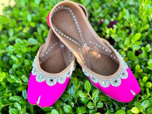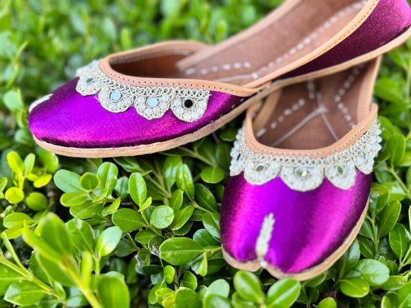 Step into a world of vibrant tradition with the Radiant Color Pop Jutti Set. This dazzling assortment features 10 handcrafted juttis in bold, joyful shades—from rich jewel tones to playful pastels—each accented with elegant silver lace detailing. Designed with soft leather soles and detailed stitching, these juttis blend ethnic charm with modern flair.
