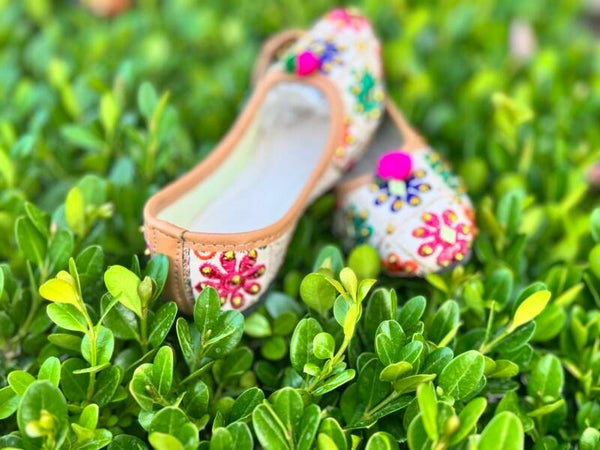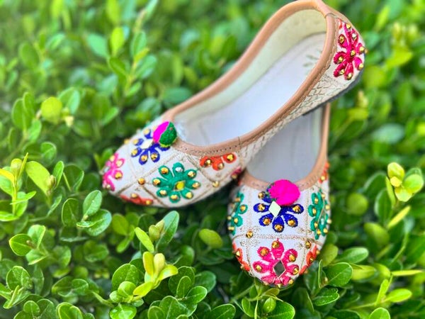 Add a pop of tradition with the Flower Princess Jutti - Girls – a colorful celebration of India’s folk art. Adorned with intricate embroidery, mirror work, and bright pom-poms, this jutti pairs perfectly with lehengas or kurta sets. Designed for comfort and style, it’s ideal for twirling at garba nights or family functions.